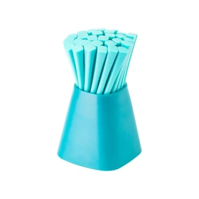 COMPLETE 30 TOOTHPICS SET - This set includes 30 premium toothpicks designed to make every aperitif an elegant and refined experience. Ideal for entertaining guests, these sticks are not only functional but also a stylish addition to any table. MODERN AND REFINED DESIGN: Each toothpick features a contemporary turquoise design, adding a touch of color and style to your appetizers. Perfect for formal or casual events, they help create a chic and sophisticated atmosphere that will impress your guests. Versatility for any type of dish: These toothpicks are extremely versatile and suitable for a variety of foods, including appetizers, tapas, mini sausages, sandwiches and finger foods. There are no limits in their use, allowing you to experiment with different culinary presentations. IDEAL SIZE FOR EASE OF USE - With dimensions of 6 x 6 x 10.5 cm, each toothpick is designed to be easy to handle and perfect for use at meals. The ideal length allows you to easily grab all kinds of food, making serving simple and effortless. Durable and Safe Material - Made of high quality polypropylene, these toothpicks are strong and durable, ensuring long time use without compromising food safety. They are easy to clean and maintain, making your event even more enjoyable.