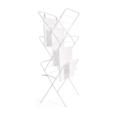 Avilia Vertical Folding Clothes Airer for Indoor and Outdoor Use with Leg Locking System, Non Slip, Stainless Steel, 61 x 138 44.5 cm, White