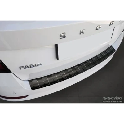 Avisa Black Stainless Steel Rear bumper protector compatible with Skoda Fabia III Combi FL 2018 'Ribs'