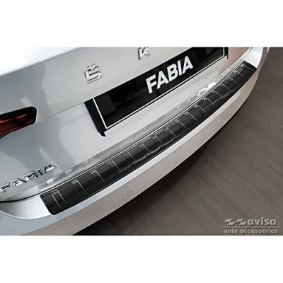 Avisa Black Stainless Steel Rear bumper protector compatible with Skoda Fabia III...