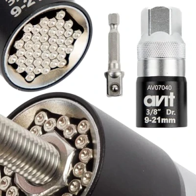 Avit Universal Socket Wrench 3/8" Drive, 921mm Multi Function Tool for Nuts Bolts Hooks Wing and Irregular Shapes, Heavy Duty CRV Steel, Hex Pin Design Adaptor Drills Ratchets, AV07040