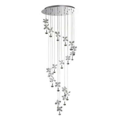 A stunning design has been created using the latest LED technology resulting in this magnificent collection. Contra to traditional methods of illumination, up-light projection has been used to enhance the illumination of the unique and beautiful crystal petals, which creates an amazing effect throughout the design. The masterpiece in the collection is the 28 light pendant which is simply stunning. There are also spiral versions which would be suited for staircase locations. The in-direct light simply leaves the observer bewildered as to how the dazzling effect is created.