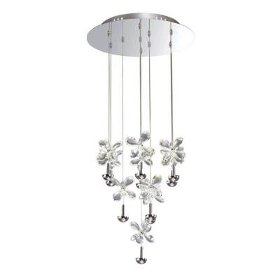 A stunning design has been created using the latest LED technology resulting in this magnificent collection. Contra to traditional methods of illumination, up-light projection has been used to enhance the illumination of the unique and beautiful crystal petals, which creates an amazing effect throughout the design. The masterpiece in the collection is the 28 light pendant which is simply stunning. There are also spiral versions which would be suited for staircase locations. The in-direct light simply leaves the observer bewildered as to how the dazzling effect is created.