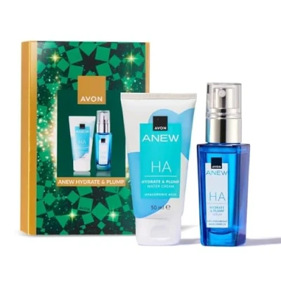 LIGHTWEIGHT TEXTURE - This combination of perfect hydrating skin care products, which quickly breaks to help deliver actives to the skin - for an instant bounce-back effect. TRI-MOLECULE FORMULA - Containing Hyaluronic acid and Pro Vita-D Technology to visibly plump the skin with hydration for up to 72 hours. Based on a clinical efficacy study with 24 participants. HOW TO USE - Dab a pea-sized amount of Anew HA Hydrate & Plump Serum onto your face and neck until it’s fully absorbed. Follow with the face cream and enjoy double the plumping power without the fillers. Use this power pair every morning and night for best results. CRUELTY FREE - We don't test a single product or ounce of ingredient on animals. In fact, we're actively against it, campaigning for acceptance on non-animal testing methods for more than 3 decades. AVON - We're passionate about keeping you at the centre of beauty, creating products that embrace the latest trends and cutting-edge technology, alongside everyday essentials that will be the staples of your beauty kit.