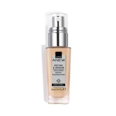 MAKEUP & SKIN-CARE IN 1 - See a new level of visible results and boost skin's natural luminosity with Anew Refine & Renew Collagen Boost Foundation, developed by Anew skincare experts. Powered by skin science - this collagen-boosting liquid foundation is formulated with award-winning Protinol to help stimulate skin to naturally produce 50% more collagen for a more resilient, plumper, and firmer-looking complexion. BLURRING TECHNOLOGY - This is the silken foundation that helps erase signs of fatigue without settling into fine lines, with SPF30 to help protect your skin from the sun. It also visibly improves your skin texture each time you wear it, helping it look more refined, rejuvenated and energised, as if lit from within. HOW TO USE: We recommend applying with our Flat Foundation Brush or Full-Coverage Foundation Brush for a pro finish. Blend the foundation out around your hairline, jawline and neck with our Flat Buffing & Stippling Brush for a seamless finish. Cover any imperfections that are still showing with the Anew Protinol Concealer. CRUELTY FREE - We don't test a single product or ounce of ingredient on animals. In fact, we're actively against it, campaigning for acceptance on non-animal testing methods for more than 3 decades. AVON - We're passionate about keeping you at the centre of beauty, creating products that embrace the latest trends and cutting-edge technology, alongside everyday essentials that will be the staples of your beauty kit.