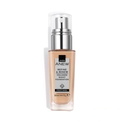 MAKEUP & SKIN-CARE IN 1 - See a new level of visible results and boost skin's natural luminosity with Anew Refine & Renew Collagen Boost Foundation, developed by Anew skincare experts. Powered by skin science - this collagen-boosting liquid foundation is formulated with award-winning Protinol to help stimulate skin to naturally produce 50% more collagen for a more resilient, plumper, and firmer-looking complexion. BLURRING TECHNOLOGY - This is the silken foundation that helps erase signs of fatigue without settling into fine lines, with SPF30 to help protect your skin from the sun. It also visibly improves your skin texture each time you wear it, helping it look more refined, rejuvenated and energised, as if lit from within. HOW TO USE: We recommend applying with our Flat Foundation Brush or Full-Coverage Foundation Brush for a pro finish. Blend the foundation out around your hairline, jawline and neck with our Flat Buffing & Stippling Brush for a seamless finish. Cover any imperfections that are still showing with the Anew Protinol Concealer. CRUELTY FREE - We don't test a single product or ounce of ingredient on animals. In fact, we're actively against it, campaigning for acceptance on non-animal testing methods for more than 3 decades. AVON - We're passionate about keeping you at the centre of beauty, creating products that embrace the latest trends and cutting-edge technology, alongside everyday essentials that will be the staples of your beauty kit.