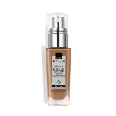 MAKEUP & SKIN-CARE IN 1 - See a new level of visible results and boost skin's natural luminosity with Anew Refine & Renew Collagen Boost Foundation, developed by Anew skincare experts. Powered by skin science - this collagen-boosting liquid foundation is formulated with award-winning Protinol to help stimulate skin to naturally produce 50% more collagen for a more resilient, plumper, and firmer-looking complexion. BLURRING TECHNOLOGY - This is the silken foundation that helps erase signs of fatigue without settling into fine lines, with SPF30 to help protect your skin from the sun. It also visibly improves your skin texture each time you wear it, helping it look more refined, rejuvenated and energised, as if lit from within. HOW TO USE: We recommend applying with our Flat Foundation Brush or Full-Coverage Foundation Brush for a pro finish. Blend the foundation out around your hairline, jawline and neck with our Flat Buffing & Stippling Brush for a seamless finish. Cover any imperfections that are still showing with the Anew Protinol Concealer. CRUELTY FREE - We don't test a single product or ounce of ingredient on animals. In fact, we're actively against it, campaigning for acceptance on non-animal testing methods for more than 3 decades. AVON - We're passionate about keeping you at the centre of beauty, creating products that embrace the latest trends and cutting-edge technology, alongside everyday essentials that will be the staples of your beauty kit.