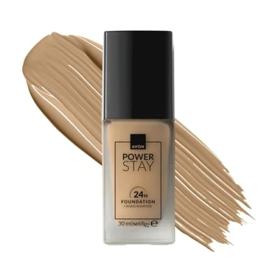 24 HOURS OF FULL COVERAGE: Our bestselling Oil-Free Power Stay 24H Foundation is now powered with Niacinamide and SPF10. It doesn’t block pores, or dry skin and it covers skin redness. This is the liquid foundation that stays put, and stays comfortable, every step of your day. STAYS PUT. STAYS COMFORTABLE. STAYS MATTE: Colour Lock Technology locks in pigments for lasting wear that stays put through heat, humidity, and non-stop activity. The breathable, fresh-feel formula is now powered with Vitamin B3 Niacinamide and the natural-looking formula evens skin tone and controls the look of shine all day. HOW TO USE: We recommend applying with our Flat Foundation Brush or Full-Coverage Foundation Brush for a pro finish. Blend the foundation out around your hairline, jawline and neck with our Flat Buffing & Stippling Brush for a seamless finish. Cover any imperfections that are still showing with Power Stay 18H Longwear Concealer. CRUELTY FREE - We don't test a single product or ounce of ingredient on animals. In fact, we're actively against it, campaigning for acceptance on non-animal testing methods for more than 3 decades. AVON - We're passionate about keeping you at the centre of beauty, creating products that embrace the latest trends and cutting-edge technology, alongside everyday essentials that will be the staples of your beauty kit.