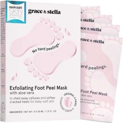 WINNER of “Best Foot Product” in the Marie Claire Skin Awards - Get rid of dry, cracked, rough, and callused foot skin with easy to use, natural, and moisturizing foot peeling masks that remove dead skin. Proudly show off your soft baby feet! No More Calluses or Flakey Skin - Say goodbye to rough calluses and tough skin - with this foot mask for dry cracked feet, your feet will be left smooth and soft to the touch. Our feet peeling mask works like magic to peel off dead skin. Unique Formula - Unlike other foot peel masks, these are vegan, easy to use, cruelty-free & sulfate-free. Each foot mask moisturizing peel is made with 17 natural fruit and vegetable extracts for a better quality exfoliating foot mask experience! Loved by Thousands - Our peeling foot mask is viral on TikTok! As seen on Dragons Den, in Fab Fit Fun, GlossyBox, Ipsy, and used by many beauty influencers. Feet masks are the perfect holiday gift or stocking stuffer for couples and friends! 30 Day Feel Good Policy - Vegan & cruelty-free self care products that make "me-time" the best time. If you aren't 100% happy, simply let us know & we'll make it right. You'll love these foot peeling masks. Try today!