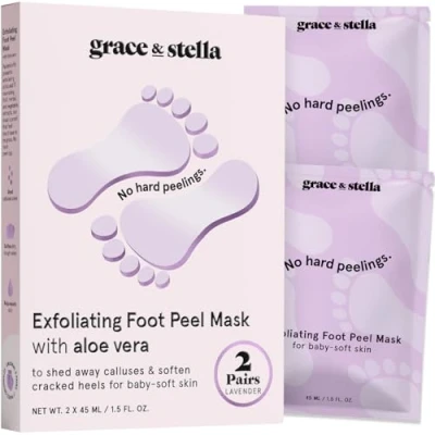 WINNER of “Best Foot Product” in the Marie Claire Skin Awards - Get rid of dry, cracked, rough, and callused foot skin with easy to use, natural, and moisturizing foot peeling masks that remove dead skin. Proudly show off your soft baby feet! No More Calluses or Flakey Skin - Say goodbye to rough calluses and tough skin - with this foot mask for dry cracked feet, your feet will be left smooth and soft to the touch. Our feet peeling mask works like magic to peel off dead skin. Unique Formula - Unlike other foot peel masks, these are vegan, easy to use, cruelty-free & sulfate-free. Each foot mask moisturizing peel is made with 17 natural fruit and vegetable extracts for a better quality exfoliating foot mask experience! Loved by Thousands - Our peeling foot mask is viral on TikTok! As seen on Dragons Den, in Fab Fit Fun, GlossyBox, Ipsy, and used by many beauty influencers. Feet masks are the perfect holiday gift or stocking stuffer for couples and friends! 30 Day Feel Good Policy - Vegan & cruelty-free self care products that make "me-time" the best time. If you aren't 100% happy, simply let us know & we'll make it right. You'll love these foot peeling masks. Try today!