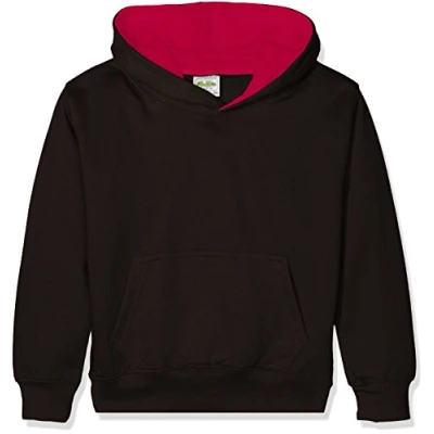AWDis Just Hoods Kids Varsity Hoodie Unisex Jet Black/Hot Pink 1213