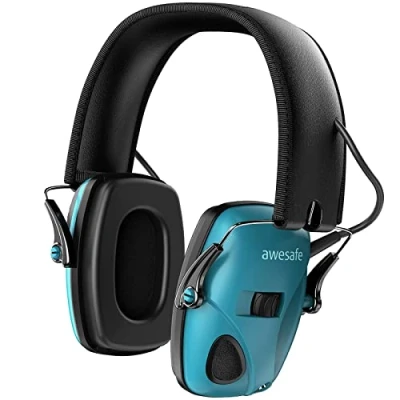 awesafe GF01 Electronic Shooting Earmuffs Ear Defenders Noise Reduction Sound Amplification Safety Muffs, NRR 24, Ideal for and Hunting (Blue)