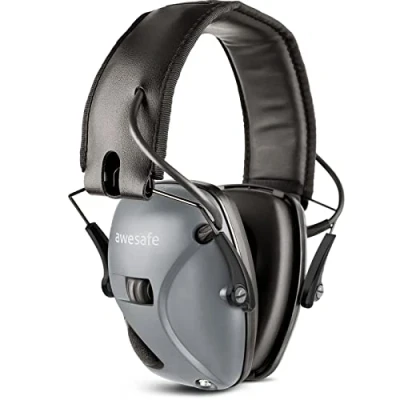 awesafe GF01 Electronic Shooting Earmuffs Ear Defenders Noise Reduction Sound Amplification Safety Muffs, NRR 24, Ideal for and Hunting (Grey)