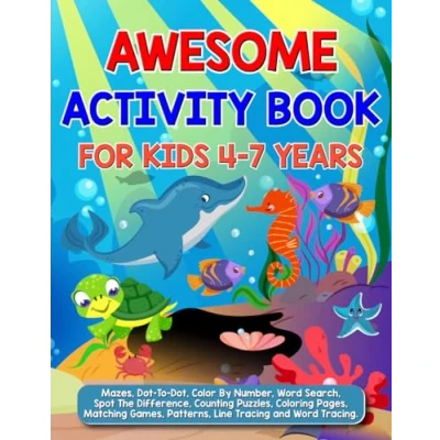 Awesome Activity Book for Kids 4 7 Years: Line and Word Tracing, Counting, Mazes, Dot to Dot, Spot the Difference, Color By Number, Search, Matching Coloring Pages! (Activity Books 8 years)