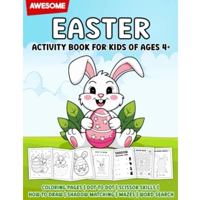 Awesome Easter Activity Book For Kids Ages 4+: with Coloring Pages, Dot to Dot, Scissor Skills, How Draw, Shadow Matching, Mazes and Word Search