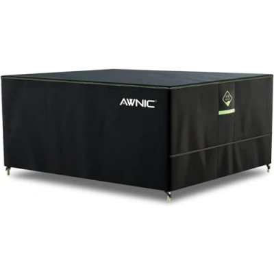 Heavy-Duty Patio Cover - Maintain the pristine condition of your favorite patio pieces. Made of premium polyester, our outdoor garden furniture covers provide an edge-to-edge coverage for tables. Ditch flimsy garden furniture covers and switch to AWNIC! Withstands All Seasons - This outdoor patio cover keeps your tables safe all year round, no matter the weather. All our patio furniture covers are constructed using non-tear AlicanTex technical fabric, allowing them to endure strong winds and heavy water pressure. Fits Perfectly - Say goodbye to complicated set-ups and ill-fitting covers. Every AWNIC patio furniture cover is easy to fix on your tables and irregular-sized furnishings. Our Velcro fasteners at the waist allow for a custom-like fit. Plus, its fasteners at the bottom secure the cover in place even under heavy wind conditions. Fade and Mold Resistant - Our outdoor table cover uses solution-dyed woven 420D oxford, which minimizes UV-caused fading. This furniture cover also features cleverly positioned air vents that block mold-attracting moisture. Eco-friendly PU coating - AWNIC's outdoor furniture covers are coated with an eco-friendly coating for waterproofing and durability while caring for the planet. Comes with a handy bag for easy storage. For cleaning, simply wipe these patio furniture covers with a damp cloth.