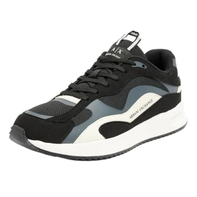 AX Armani Exchange Men's Dusseldorf Lace Up Sneaker, Black+Dark Grey, 9 UK