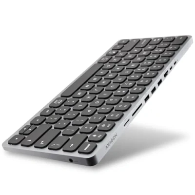 AXAGON HMC KB keyboard USB C 5Gbps with HUB, microSD/SD, 3x A, HDMI 4K/60Hz, PD 100W, Audio, US