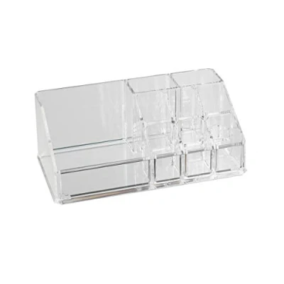 9 Compartment Cosmetic Storage Organiser Organiser Organiser Organiser for Cosmetics, Office Supplies, Hobbies and Crafts - Versatile and functional thanks to different sizes of compartments Rectangular cosmetic organiser made of transparent plastic for storing lipsticks, makeup, brushes and much more. – the content is always in sight and clearly stored Dimensions (W x H x D): approx. 17.5 x 6.5 x 9.5 cm, Weight: approx. 149 g - functional, handy, lightweight Lipstick storage for bathroom or bedroom, dresser and dressing table - can also be used as a jewellery box and can be combined with other cosmetic storage boxes from Axentia Package Included: 1 x 9 Compartment Makeup Stand