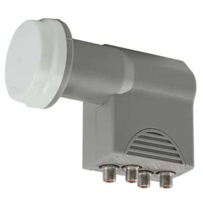Powerful quad LNB (built-in multi-switch) for direct connection to 4 satellite receivers or TVs with satellite tuner All 4 LNB outputs can be independently received satellite TV and radio, frequency range 10.7 to 12.75 GHz Weather protection housing with pull-down protection for the F connectors, 40 mm feedhorn (LNB mount), fits in standard satellite antennas Output frequency (low/high): 950-1950 MHz and 1100-2150 MHz, LOF 9.75/10.6 GHz, operating voltage 11. 5-19 V, power consumption 200 mA, noise factor 0.5 dB Best reception quality for digital satellite signals such as HDTV and 4K (Ultra HD)