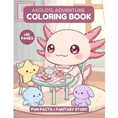 Axolotl Adventure coloring Book: +50 cute pages with Fantasy short story fun Facts about axolotls 8.5 x 11 inches Perfect for kids