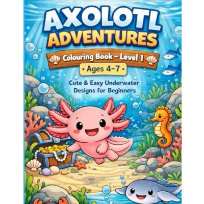 Axolotl Adventures Colouring Book Level 1: Cute & Easy Underwater Designs for Beginners (Ages 47)