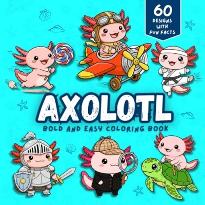 Axolotl Bold and Easy Coloring Book: 60 Cute Kawaii Illustrations with Fun Facts Simple Designs for Kids & Adults Relaxing ... Lovers (Bold Book)