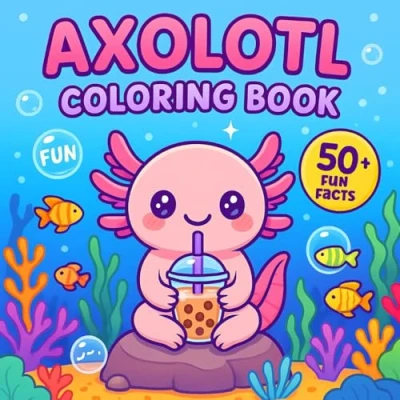Axolotl Coloring Book 50+ Fun Facts: Bold & Easy Pages, Learning About Axolotls Ocean Life