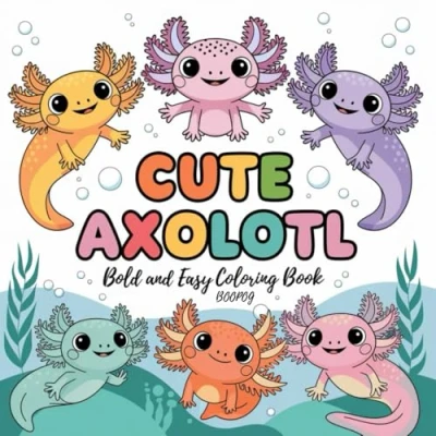 Axolotl Coloring Book: Bold and Easy Kawaii Designs for Kids, Teens, Adults: Relax Unwind with 50+ Cute Illustrations Fun Stress Relief All Ages