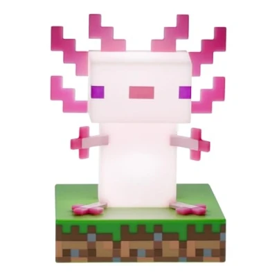 The light is 11 cm high in the shape of the pink axolotl from Minecraft Turn it on to diffuse a warm glow in your room The light can be powered by 2 AAA batteries (not included)
