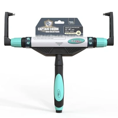 FEATURES: The arms of the frame are powder-coated for additional protection against wear and tear, while the stainless steel pins prevent corrosion and rust buildup. This ensures that it can withstand exposure to solvents and chemicals. DESIGN: The frame is constructed from a robust and lightweight combination of aluminum and polypropylene, ensuring durability and ease of use. It also has sliding adjustable ends for easy-on easy-off roller covers. ERGONOMIC HANDLE: It features an ergonomic handle that provides a comfortable grip, reducing hand fatigue during extended painting sessions. Enjoy enhanced control and maneuverability, allowing you to focus on your artwork without discomfort. LOCKING MECHANISM: The Captain Chunk Wide Roller Frame features a simple locking mechanism that prevents paint ingress, keeping your painting area clean and tidy. It prevents paint from entering the frame, ensuring your roller stays clean. EASY TO USE: It also comes with a universal thread for easy connection to extension poles, allowing you to reach high and complex areas easily. It is also easy to clean and maintain for an extended period., Manufacturer: Axus Décor