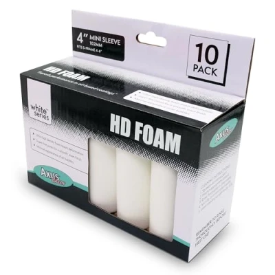 Axus Decor Hd Foam Mini Roller Sleeve 4 Inch/100mm (White Series), Pack of 10, Ultra High Density, Use with Oil Based Paints & Varnishes, for Detailed Finishing Work Around Cutouts, White