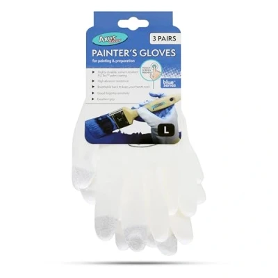 PROTECT YOUR HANDS: These gloves protect your hands from all types of paint and varnish, keeping you safe from chemicals and stains and ensuring your safety and peace of mind while you work. P.U.TEX PALM & FINGER COATING: These gloves are perfectly suitable for sanding tasks because of P.U.Tex coating on the palms and fingers. The coating ensures a secure grip, which prevents any slipping or mishaps. LIGHTWEIGHT & BREATHABLE: These gloves are lightweight, breathable, and designed for optimal precision and intricate artwork. The meshed back enhances breathability, allowing air circulation to keep hands cool and dry. COMFORTABLE: The painter's gloves are made from high-quality materials that provide excellent protection and comfort. The gloves are ergonomically designed for a fit that is close but not restrictive, ensuring that the gloves are comfortable. TOUCHSCREEN COMPATIBILITY: These gloves allow you to use smartphones and touchscreen devices without removing them, thanks to specially treated fingertips that maintain connectivity and enhance efficiency., Weight: 0.17636800948859893 Pounds, Manufacturer: Axus Décor