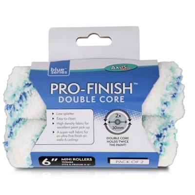 Axus Decor Pro Finish Roller, Medium Pile (Blue Series) Ultra Fine Finish, for Smooth & Semi Walls Ceilings, Mini Handles (6"/150mm Double Core,2 Pack)