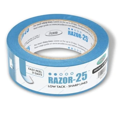 Axus Decor Razor 25 Low Tack Masking Tape 36mm x 40m For Recently Painted Surfaces, Residue Free Removal, Painting Decoration & DIY Projects, Blue