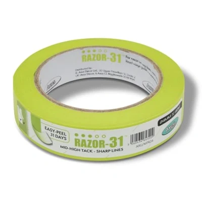 Axus Decor Razor 31 Mid High Tack Masking Tape 24mm x 40m Painting For Surfaces and Carpet, Residue Free Removal, Decoration & DIY Projects, Lime Green