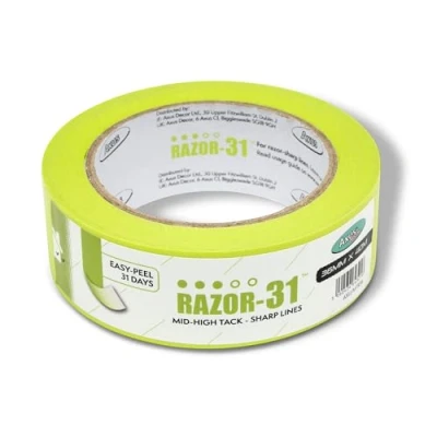 Axus Decor Razor 31 Mid High Tack Masking Tape 36mm x 40m Painting For Surfaces and Carpet, Residue Free Removal, Decoration & DIY Projects, Lime Green