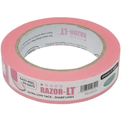 Axus Decor Razor LT Ultra Low Tack Masking Tape Clean, Straight Lines For Delicate Surfaces Up To 90 Days, Sharp Edge Indoor Painting and Decorating, All Paints, 24mm x 40m, Pink