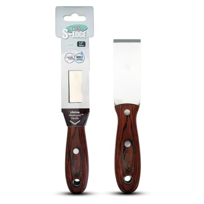 STAINLESS STEEL BLADE: This wall scraper blade is crafted from high-grade stainless steel. Steel material doesn't rust. Ensuring optimal longevity and continued high performance for all your scraper needs. ERGONOMIC WOOD HANDLE: This wallpaper scraper tool features a handle made of Aleetwood, which looks, feels, and grips like hardwood but is more durable. Unlike hardwood, Aleetwood is resistant to splitting and waterproof, making it long-lasting. The handle is designed to offer a comfortable and ergonomic grip. VERSATILE DESIGN: The steel blade is integrated through the entire length of the handle, ensuring an unbreakable construction. Even when subjected to intense force, there is no risk of the blade breaking off or becoming detached. PRECISION-GROUND CHISEL EDGE: This scraper has a precision-ground chisel edge that performs excellent scraping. With maximum efficiency and effectiveness, it can easily handle removal tasks, such as removing paint, wallpaper, and more. LIFE TIME GUARANTY: We offer a lifetime guarantee on the Axus Decor S-EDGE Scraper tool, which is a confidant to its exceptional quality and performance, giving you confidence in your purchase., Manufacturer: Axus Décor