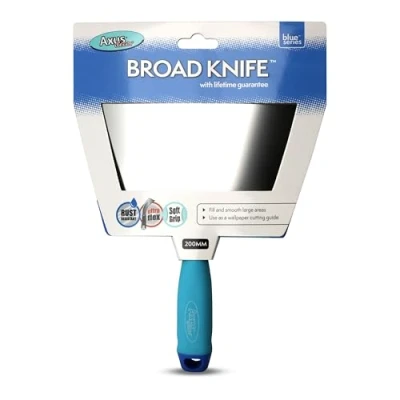 Axus Decor Stainless Steel Broad Spatula (Blue Series) Flexible Wide Filling Knife 200mm, Filler Putty for Professional & DIY Projects Anti Rust Blade and Soft Grip Ergonomic Handle