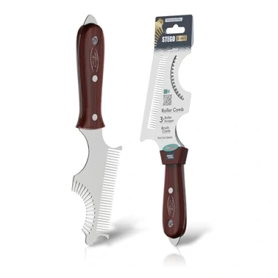 ALL-IN-ONE CLEANING TOOL: Axus Decor Stego 6-in-1 cleaner is the ultimate solution for maintaining your painting equipment. This innovative tool ensures your rollers and brushes are kept in excellent condition, saving you both time and mess. RUST-RESISTANT STAINLESS STEEL BLADE: The built-in rust-resistant, stainless steel blade runs seamlessly through the Aleetwood handle, providing durable and effective cleaning for your paint rollers and brushes. VERSATILE ROLLER SCRAPERS: Three roller scrapers cater to various roller sizes - a large section for 9-18" rollers, a small one for mini rollers, and a specialized scraper for Axus Decor double-core mini rollers. This tool is versatile, making it suitable for a wide range of painting projects. PRECISE BRUSH COMB: The brush comb reaches into the base of brush stocks, eliminating solidified paint and preserving the quality of your brushes. Experience precision in your painting with tools that are consistently in top-notch condition. CONVENIENT PAINT CAN OPENER: Equipped with a paint can opener, this cleaner adds ultimate convenience to your painting process. Say goodbye to struggling with paint can lids and streamline your workflow with Axus Decor Stego 6-in-1 cleaner., Manufacturer: AXUS Decor