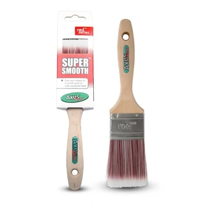 Axus Décor Super Smooth Finish (Red Color) Paint Brush For All Paints, Unvarnished, Hardwood, Beaver Tail handle, Rust Resistant Stainless Steel Ferrule, Synthetic Filaments 2"/50mm