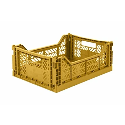 Ay Kasa Folding Crate, Sturdy Box, Plastic, Stackable, Mustard, Midi (40 x 30 14 cm)