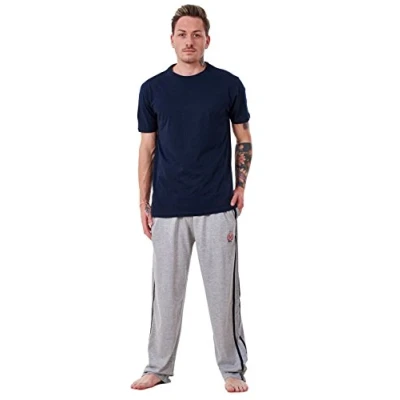 Crew Neck T shirt Top Elasticated with Tie Cord Loose Fit very soft Bottom 2 Sides Pockets, One Back open Pocket and Plain Double Stripe Line Premium quality Branded product with Money Back Guarantee Chest Size: M-38-40, L-42-44, XL-46, XXL-46-48 Inches Waist Sizes: M-30-32, L-34-36, XL-38-40, XXL-40-42 Inches Mens Pyjama Sets 100% Cotton Jersey Plain Light Weight Branded Lounge Nightwear Pjs