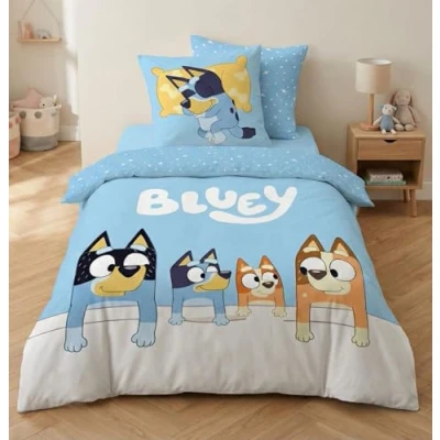 Aymax Bluey Family Reversible Bedding Set, Single Duvet Cover 140 x 200 cm + Pillowcase 65 cm, Polycotton