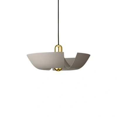 The lamp was designed with the intention of creating an object that serves as a focal point while also bringing natural light into the room. It adds personality and soul to a modern, minimalist interior and contrasts beautifully with white walls. The lamp is made of aluminium and has powder-coated surfaces in grey or black. Combined with gold-coloured details, the lamp gains an extra touch of elegance and a stylish and sophisticated look.