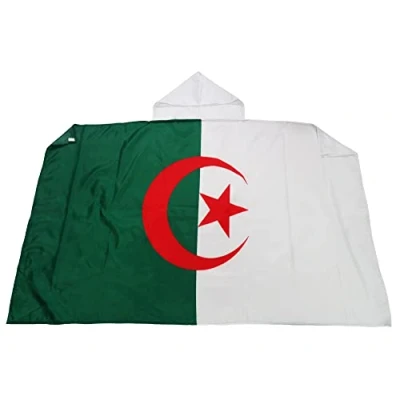 QUALITY MATERIAL: Made of lightweight 100% polyester fabric, this Algeria supporter flag is finished with multiple reinforcing seams. Satisfaction guaranteed! A PRACTICAL CAPE WITH A HANDY CAP: This ingenious product was designed with your comfort in mind. Designed with a hood and two finger notches, the flag cape is easy to wear. A HIGHLY PRIDEFUL FAN PRODUCT: Our product is an ideal fan accessory. Wear it and stand out from the crowd WEAR YOUR COLORS PROUDLY: The 3 x 5 Feet Body Flag of Algeria is a key element in the celebration of cultural and sporting events YOUR FLAGS REFERENCE: AZ FLAG is a brand specialized from 2009 in the production and distribution of flags from all over the world. Choose a brand that stands for quality