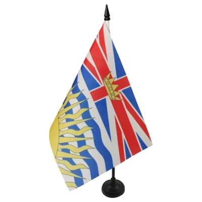AZ Flag British Columbia Table 5'' x 8'' Canadian region of Office 100% Polyester 21 14 cm Mini Desk with 10'' Pole and Black Plastic Base