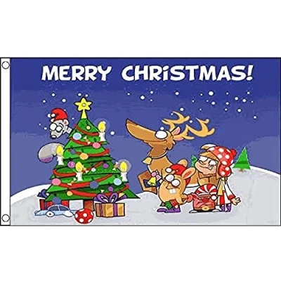 AZ Flag Christmas Scene 3x5 Ft 100D Polyester Merry Banner with Two Metal Grommets Fade Resistant Vivid Colors 3' x 5' Feet 150x90 Cm