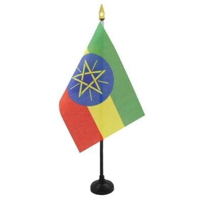 AZ Flag Ethiopia Table 4'' x 6'' Ethiopian Mini Desk 100% Polyester 15 10 cm Office with 10'' Pole Golden Spear